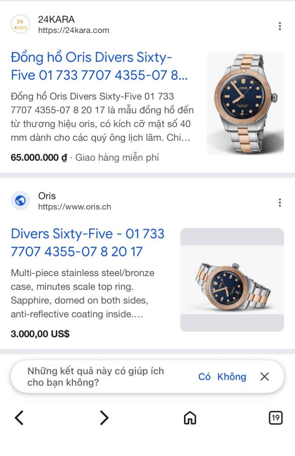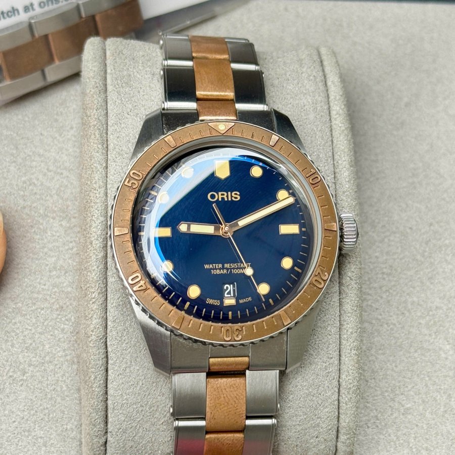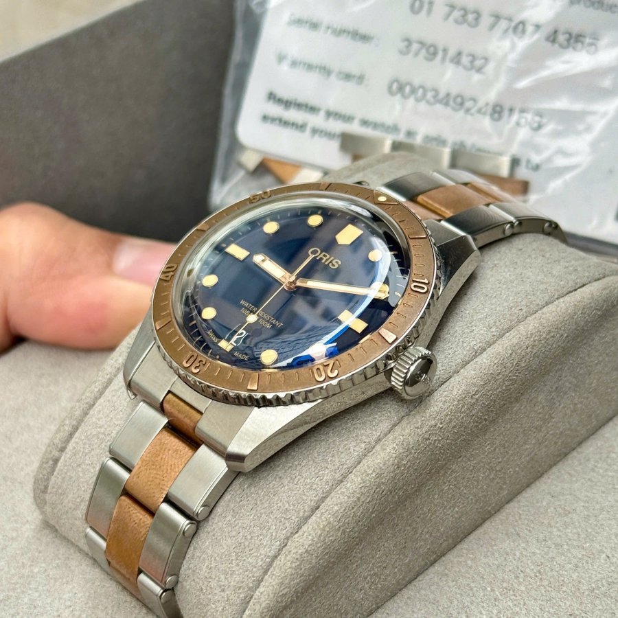 Một siêu phẩm đến từ nhà or O ris Divers Sixty-Five - 01 733 7707 - sự kết hợp hoàn hảo của đồng đúc + thép - size 40 mm - kính shaphie cong cực phức tạp - bộ máy hitech trữ cót 42 h. Bền bỉ chính xác chất búa đỏ nhà or - case được kết hợp đồng và thép. Bền bỉ sang trọng. Màu đồng trường tồn - benzen xoay thể thao. Chịu nc 100 m. Ae đi bơi nhẹ vô tư - đh like new date 2024 ít dùng. New hơn 70 triệu E giao lưu cho ae 2X tr