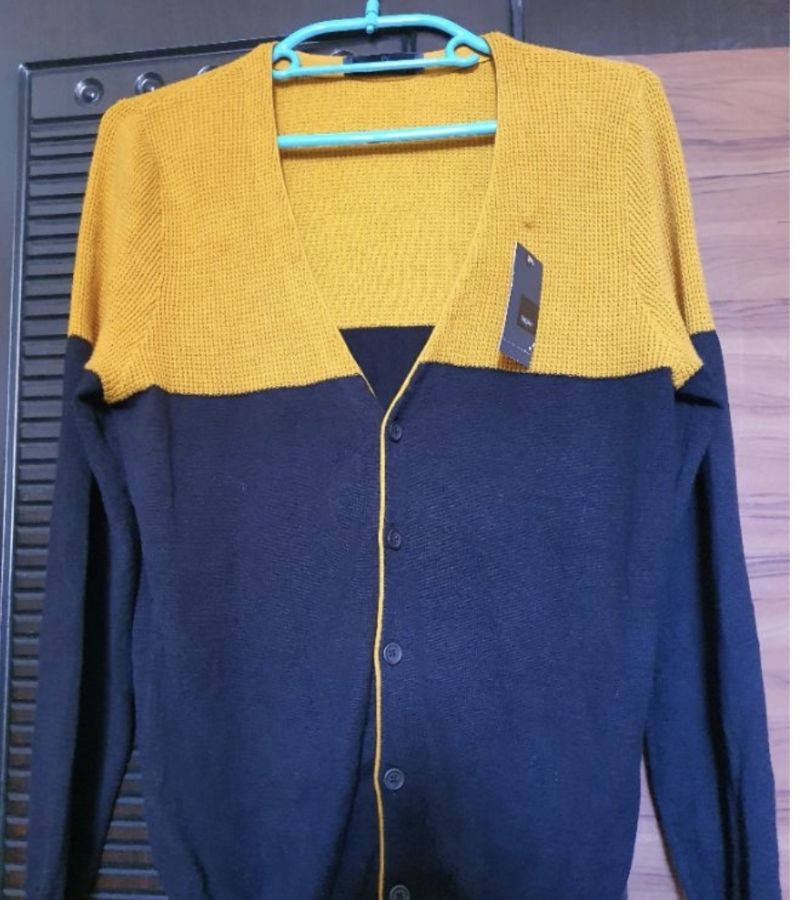 Trên màu vàng bằng len phối bên dưới màu xanh bằng thun rất đẹp