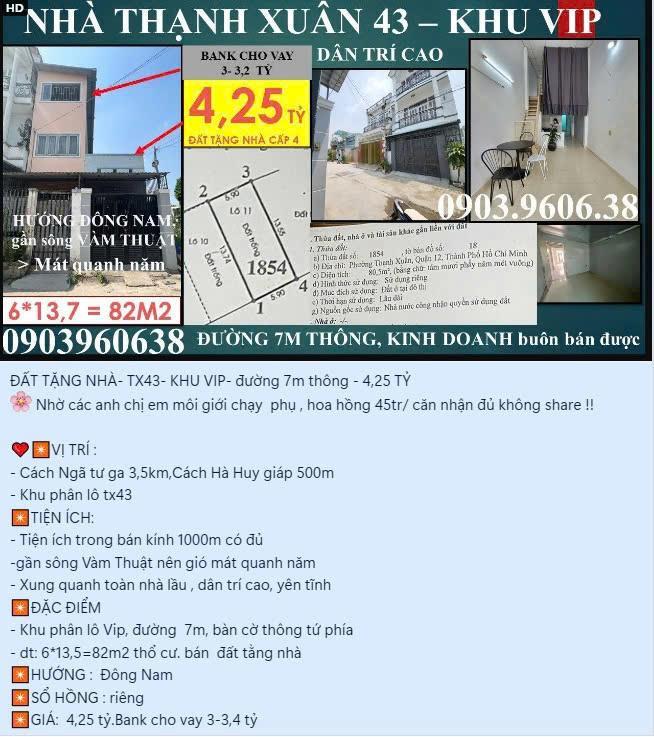 🌸 TX43 - BÁN ĐẤT TẶNG NHÀ- khu Vip - đường 7m thông- chỉ 4,25 TỶ
