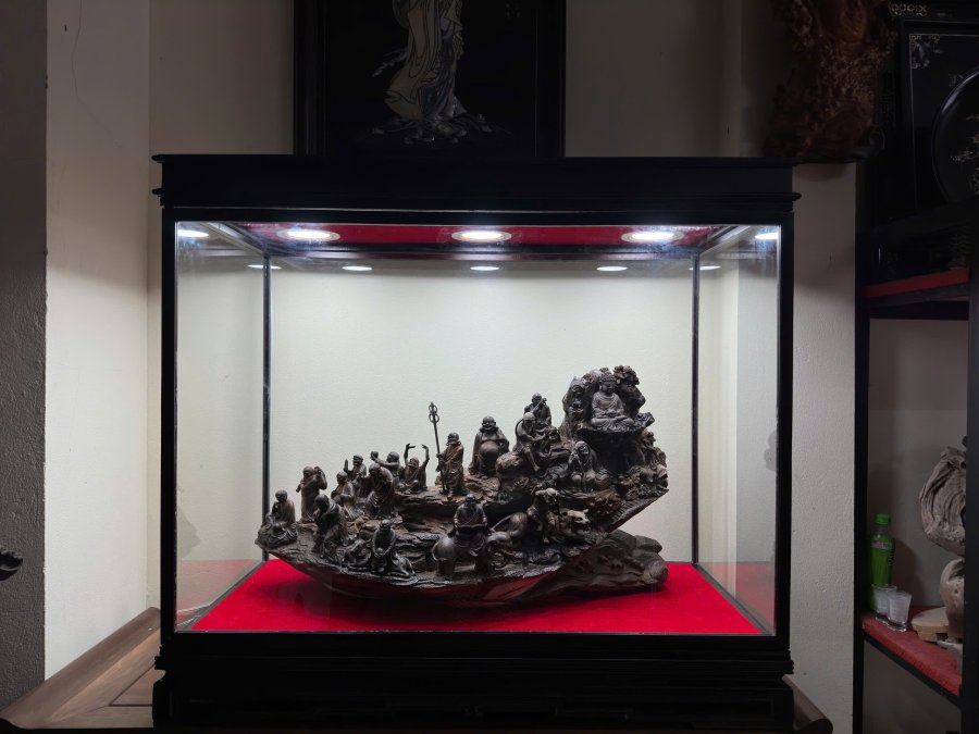 Thập bát La hán gỗ trắc đục tay liền khối trên 1 thân gỗ, kích thước C40 x R75 x S36 đang để mộc, Liên hệ để biết thông tin 0916198668