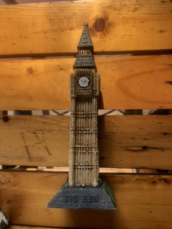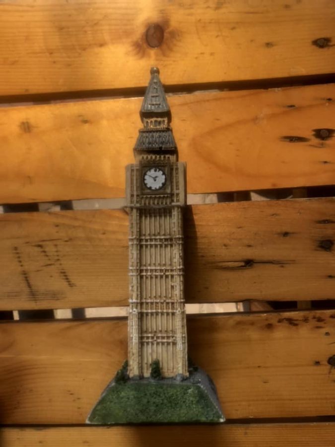 Tháp đồng hồ Big Ben, chất liệu composite mầu, tình trạng như hình chụp, ***kích thước cao 22 cm. Giá bán: 250 k + ship, nhận ship toàn quốc.
