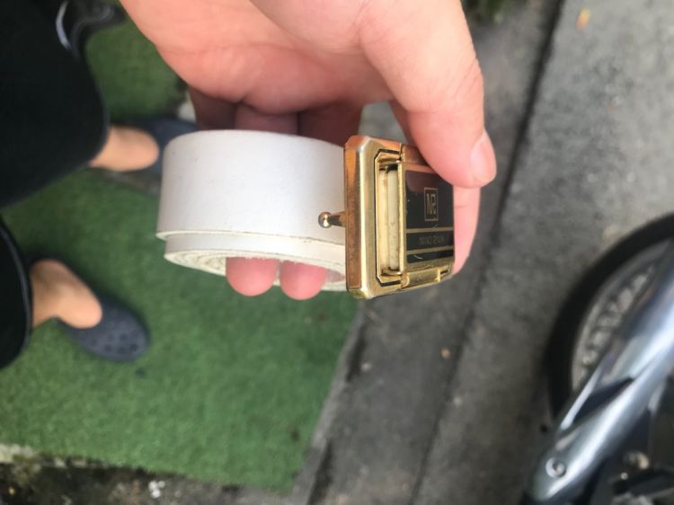Em thắt lưng da thật cực độc gl ae ben trong mặt nịt là đồng hồ đo bước đi dây da bê màu trắng mqng quần âu hay jean đẹp hết mặt mạ vàng 24
