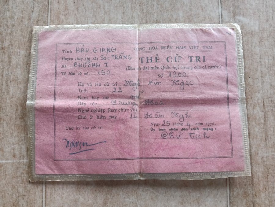 Thẻ cử tri 1976: Cộng Hòa Miền Nam Việt Nam
