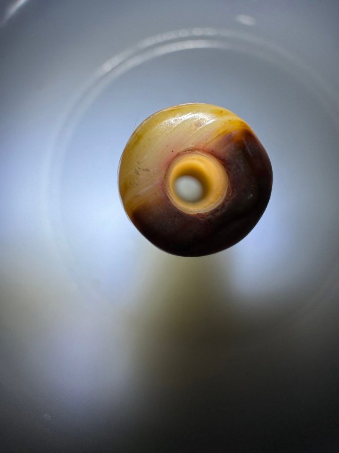 Thiên châu Dzi Kt: 40x12,6 Chu sa huyết đỏ thân Ngọc