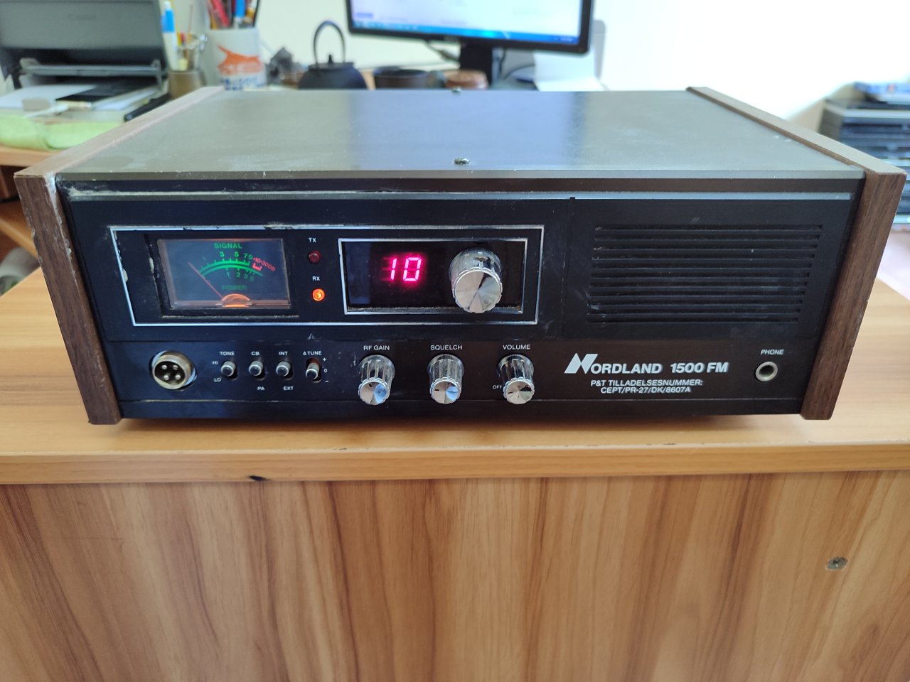 Thiết bị không rõ công dụng, hàng Nhật xuất Âu, dùng điện 220V, có đèn VU, 2 bên thiết kế 2 hồi gỗ rất đẹp, bật nguồn loa phát ra tiếng rè rè