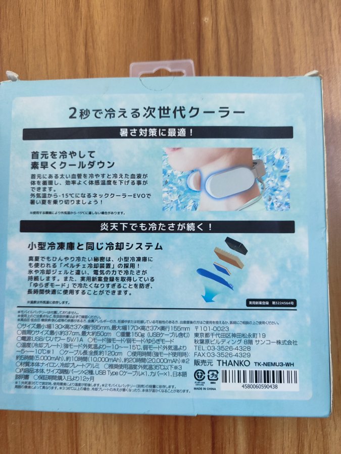 Thiết bị đeo làm mát cổ Thanko, hàng chưa qua sử dụng, hoạt động tốt. Dùng nguồn DC5V, có thể cắm vào cóc sạc điện thoại hoặc pin dự phòng. Đi kèm là 1 dây type-C dài 1.2m.
