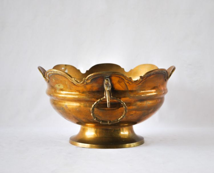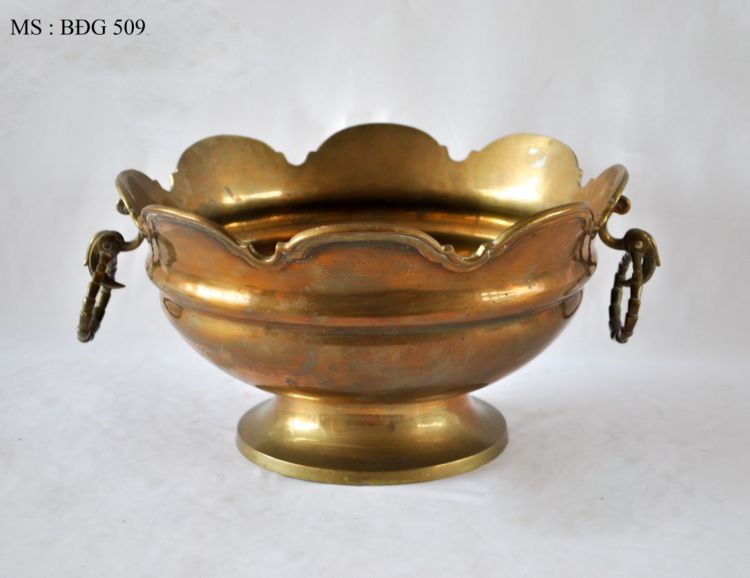 Thố, chậu đồng có quai ( cao 17cm, rộng 31cm, nặng 1,9kg )