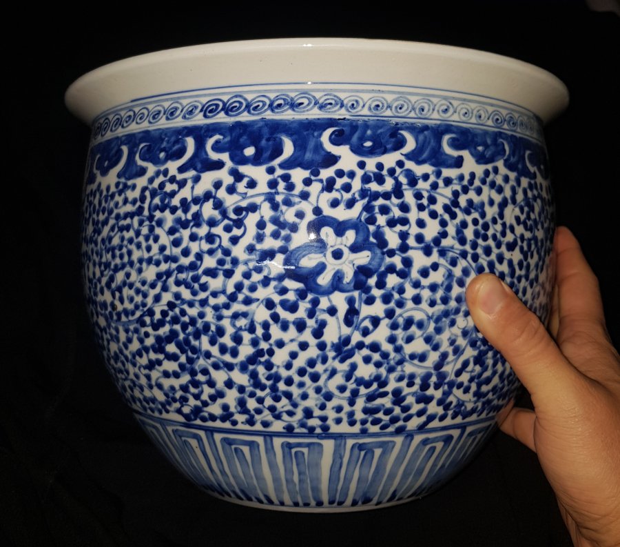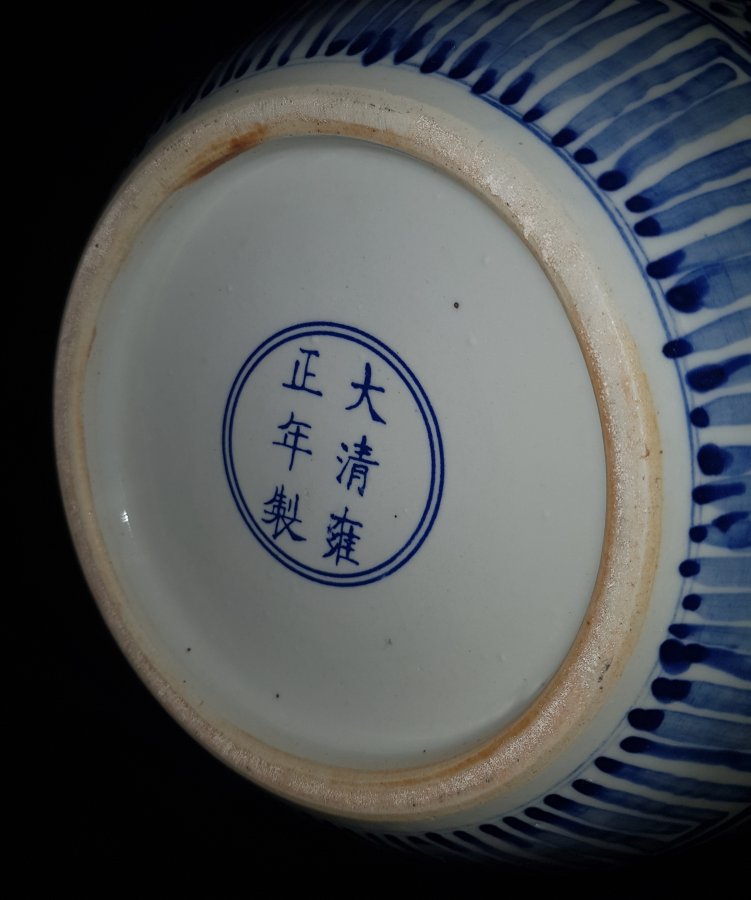 Thống men lam chuẩn cổ với cốt dầy nặng , hiệu đề ĐẠI THANH UNG CHÍNH NIẾN TẠO . Thống đướng kính miệng 32.5cm. lọt lòng 26.5cm. cao 23.5cm. Lành lặn rất già đồ và cốt rất nặng. GL6800k