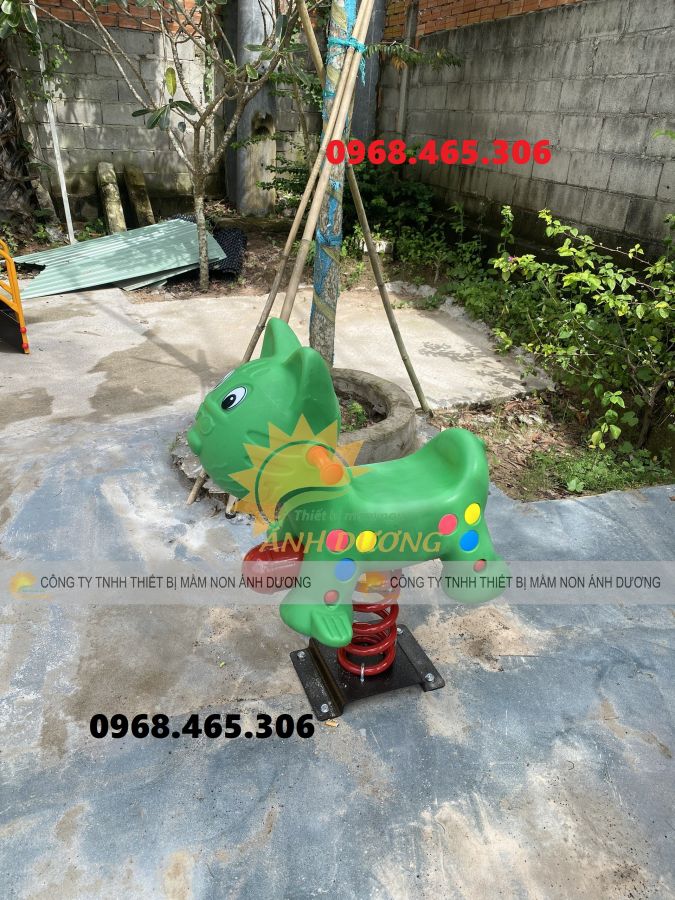 Sản phẩm có độ cao vừa phải, được đúc bằng nhựa composite. Khung trụ bằng lò xo thép. Đế bằng bê tông phủ lớp nhựa composite. Phần chân đế chắc chắn được làm bằng bản mã dập dày dặn, chắc chắn và được cố định bằng vít lỏ sắt có khả năng chịu lực tốt. Phần lò xo có độ đàn hồi tốt, vừa làm bệ đỡ cho bé vừa giúp tạo độ nhún cho sản phẩm.