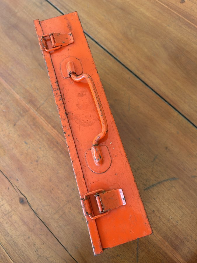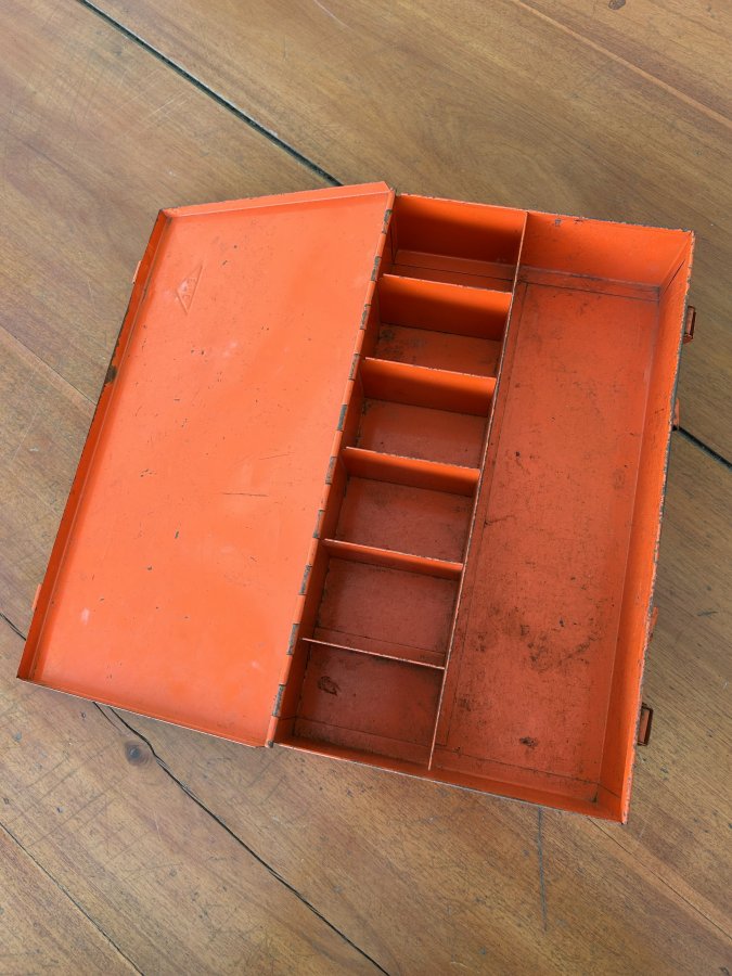 Bán thùng đựng đồ nghề Nhật còn khá đẹp. Thùng cứng cáp, dày dặn, có kích thước 365x205x75mm, nặng 1650g. Thùng không cấn móp, bên trong mới đẹp. Bản lề, tay xách, móc khóa lành nguyên, cứng cáp