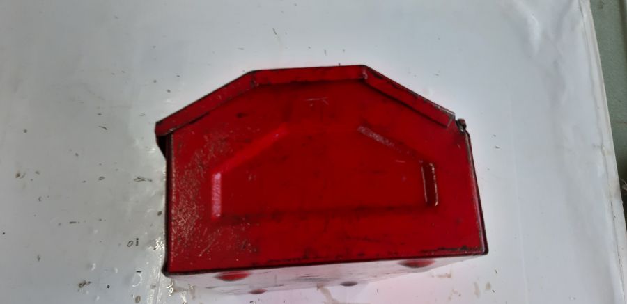 Thùng thép khá dày qua sử dụng ở Nhật có cấn móp có tróc sơn nhưng không đáng kể, về các bác muốn đẹp mua chai sơn xịt 30k sơn thêm lớp xài cả đời chưa hư. KT: dài 34cm, rộng 15cm, cao 10cm.