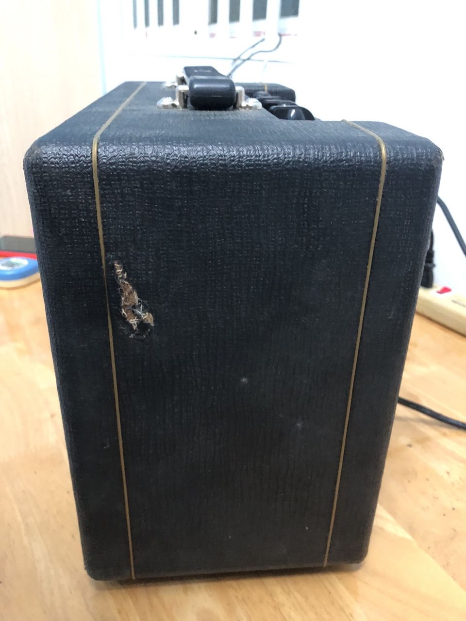 Thùng Guitar VOX V9106 - England (Made in Vietnam) kích thước 38x26x17cm, cắm đàn hoặc micro vào là hát rất tiện, nguyên rin hoạt động tốt, củ loa England, hàng từ Nhật về sử dụng điện 100V Giá 1.500k Có ship. 0913 025 048