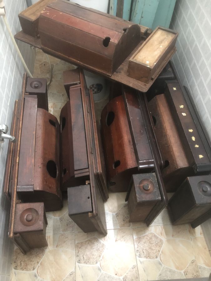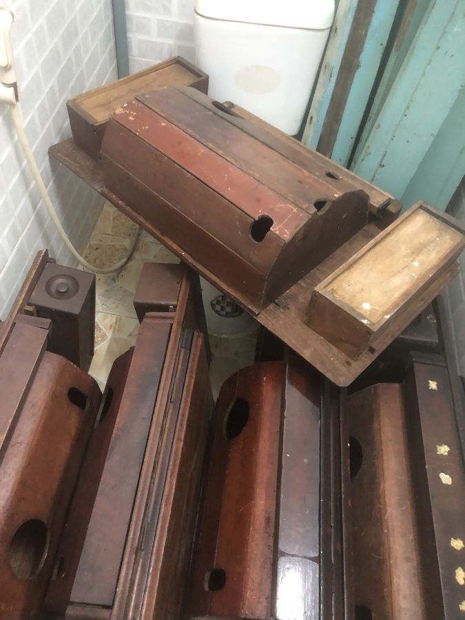 Thùng máy khâu gõ đỏ, hương. Tất cả gỗ thịt hết, không ván ép. có loại thiếu bụng ( thùng)
