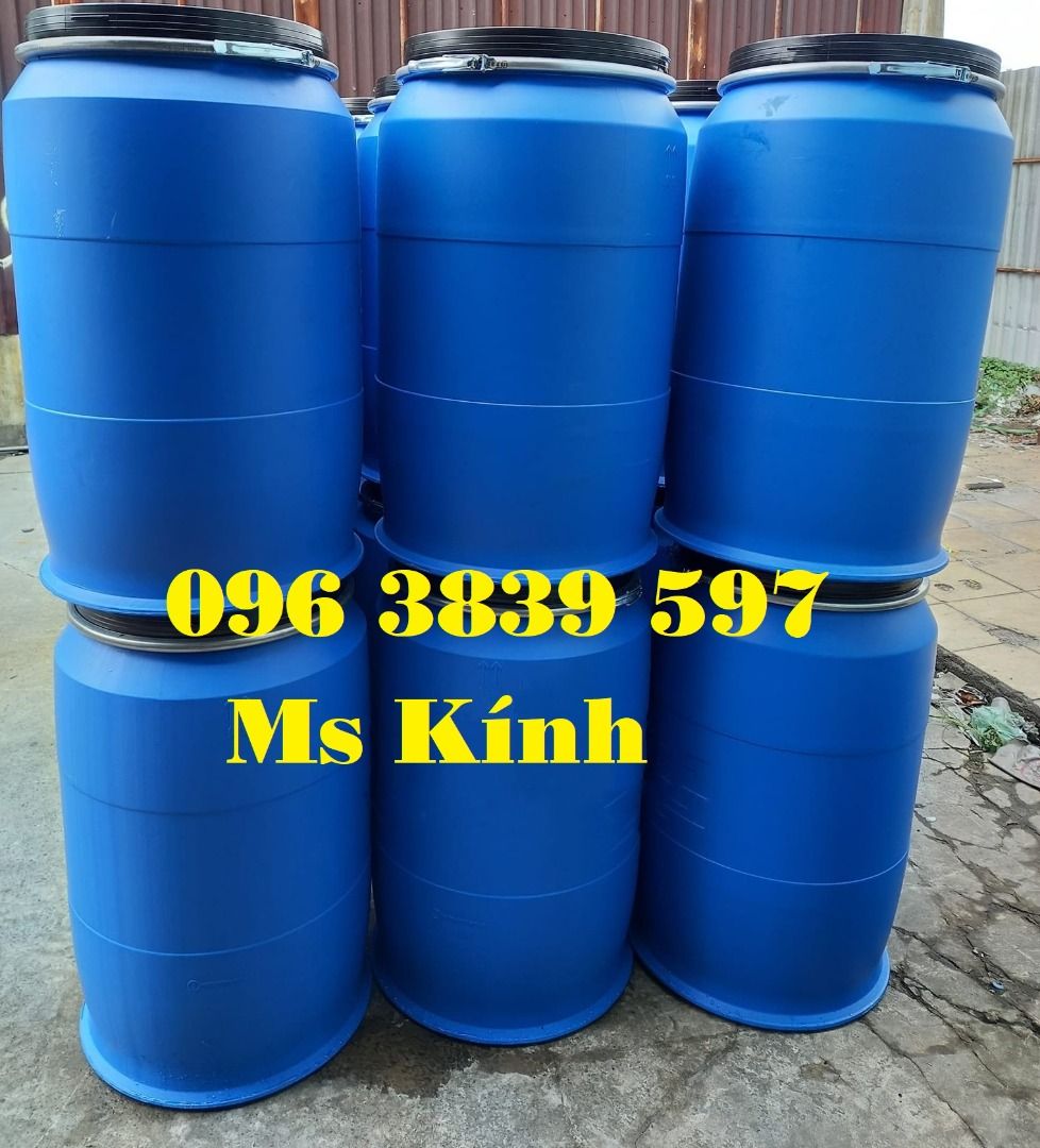 -Thùng phi nhựa 200 lít được sản xuât từ nhựa HDPE, thành thùng dày, nắp có đai sắt giúp siết chặt nắp thùng với thân thùng.