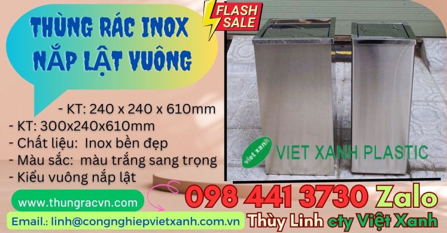 – Thùng rác hình vuông, cao, kiểu dáng chắc chắn