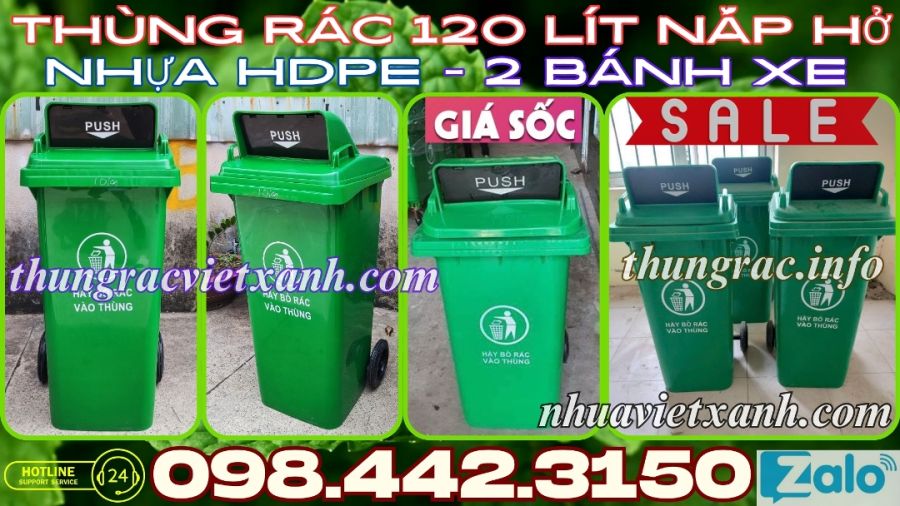 Thùng đựng rác 120 lít nắp hở được sản xuất từ nguyên liệu nhựa HDPE có đặc tính bền, nhẹ và dẻo dai nên dòng sản phẩm này hiện tại rất được ưa chuộng trên thị trường. Xuất hiện ở rất nhiều nơi như công viên, khu vui chơi giải trí, siêu thị, trung tâm thương mại, nhà hàng, khách sạn, bệnh viện, trường học, khu chung cư, hộ gia đình, khu công nghiệp, nhà máy, xí nghiệp, công ty, các nơi công cộng…