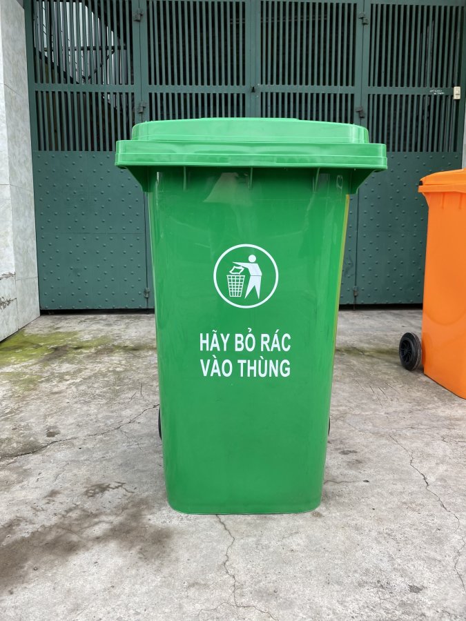 - Thùng rác xanh 240l: được sử dụng phổ biến và gần gũi nhất với chúng ta, được sử dụng để chứa các loại rác thải thông thường, rác thải sinh hoạt hàng ngày.
