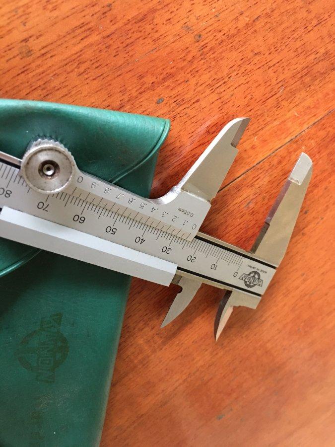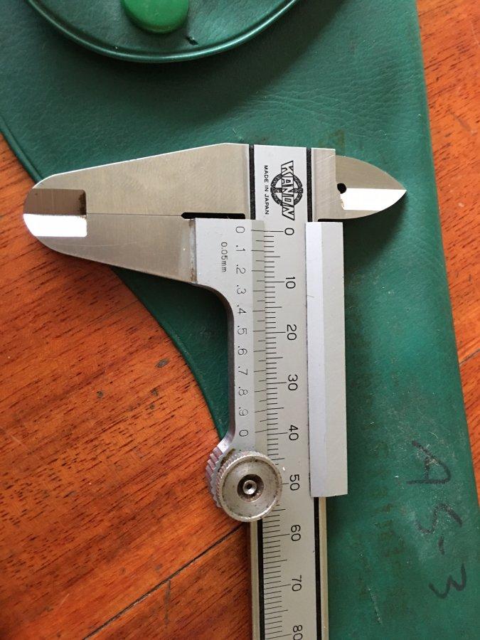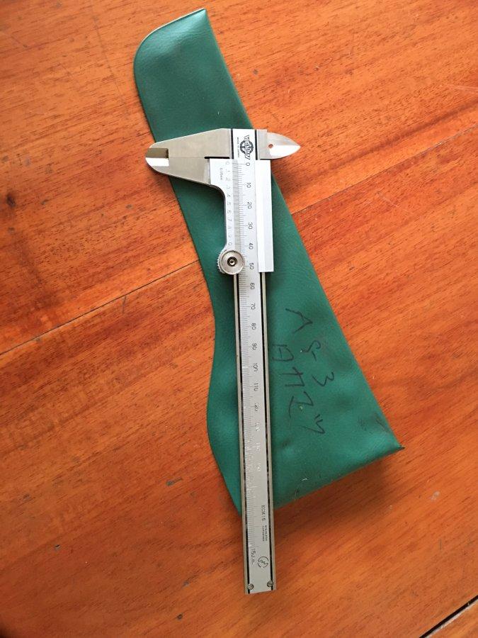Bán 1 thước cặp Kanon 150mm. Thước bị tróc nhẹ sơn số 130,140, 150. Số khắc nên vẫn nhìn rõ nét, đo trong, đo ngoài đều chính xác, hoàn hảo
