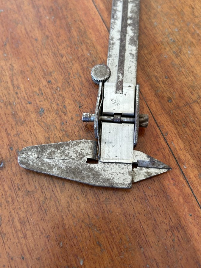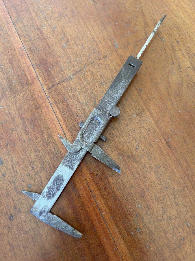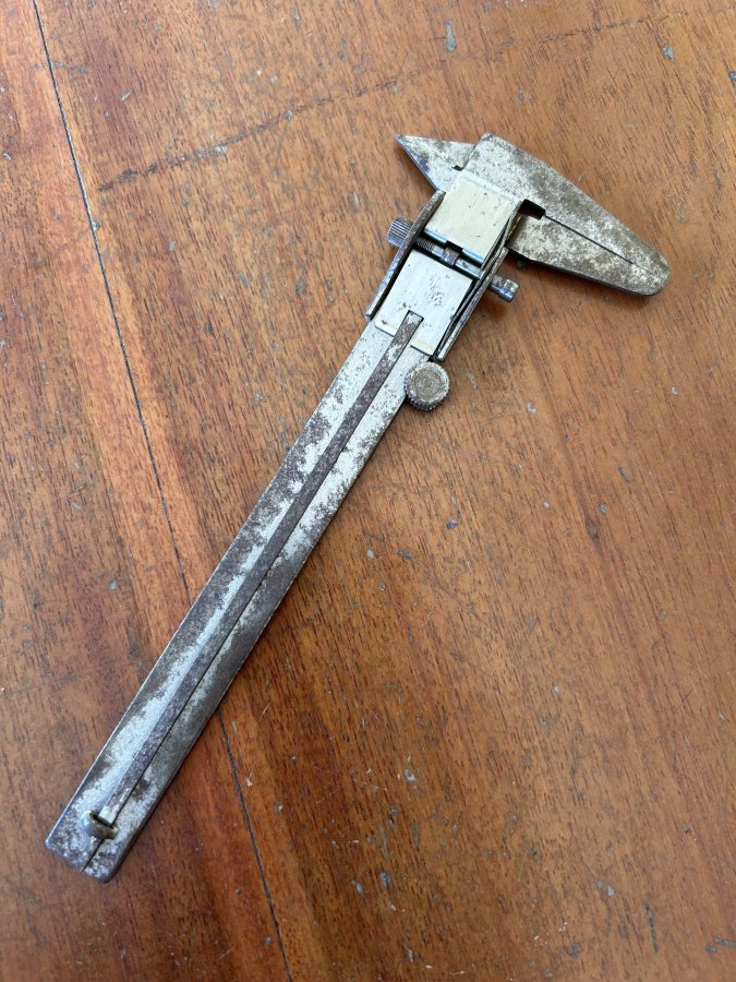 Bán cây thước cặp 12cm của Germany xưa, ae vệ sinh lại sử dụng. Vạch, số khắc chìm, 2 ngàm đo còn rất đẹp