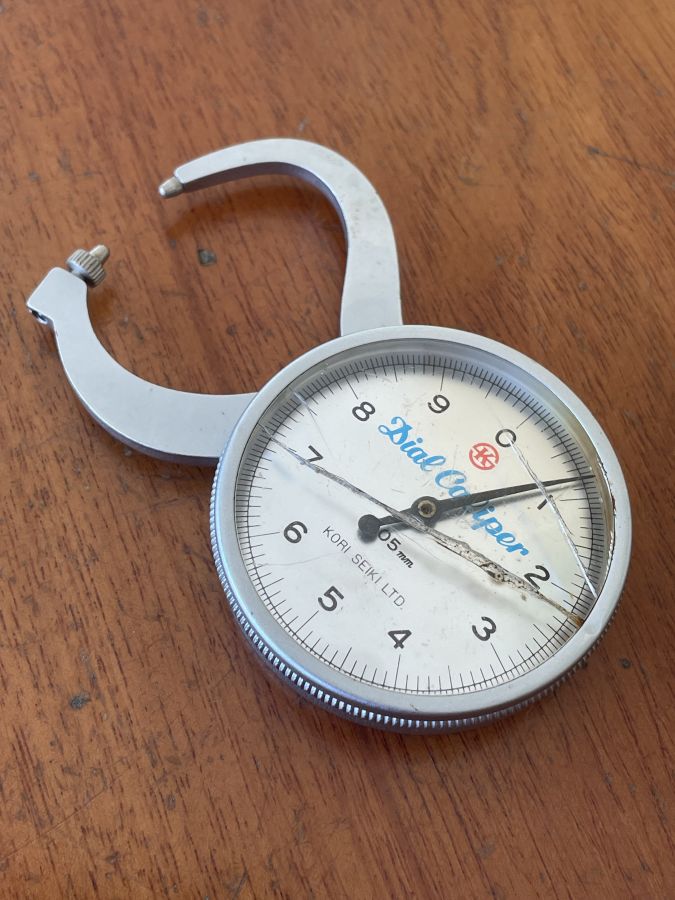 Bán thước đo độ dày Kori Seiki còn rất đẹp,chỉ tiếc mặt kính có rạn nứt như hình nhưng không bị rời, mặt số vẫn nhìn rõ. Dụng cụ đo từ 0-10mm hoàn hảo