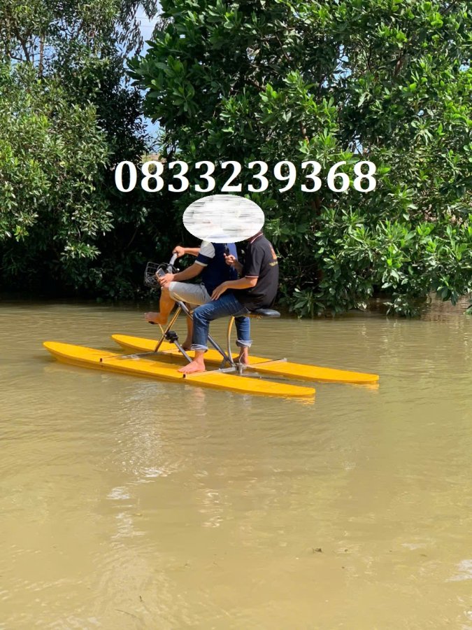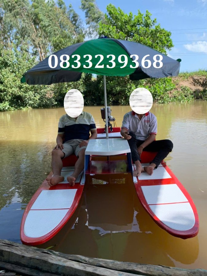 Thuyền 2 phao, 2 người đi câu cá, dạo hồ.