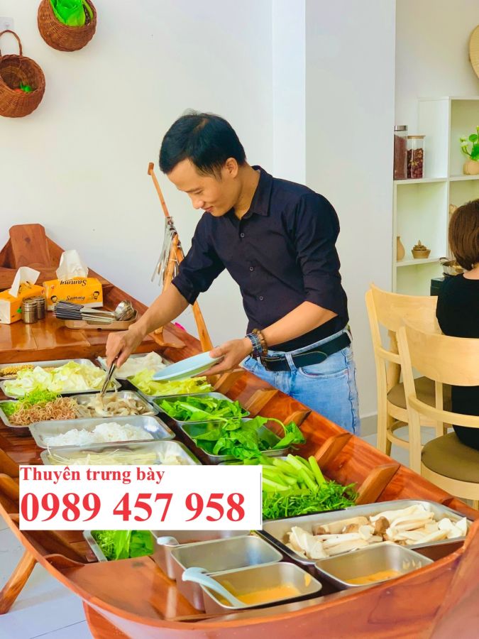 Nếu bạn mua thuyền gỗ trang trí tạo không gian cho quán, liên hệ qua Hotline 0989457958.