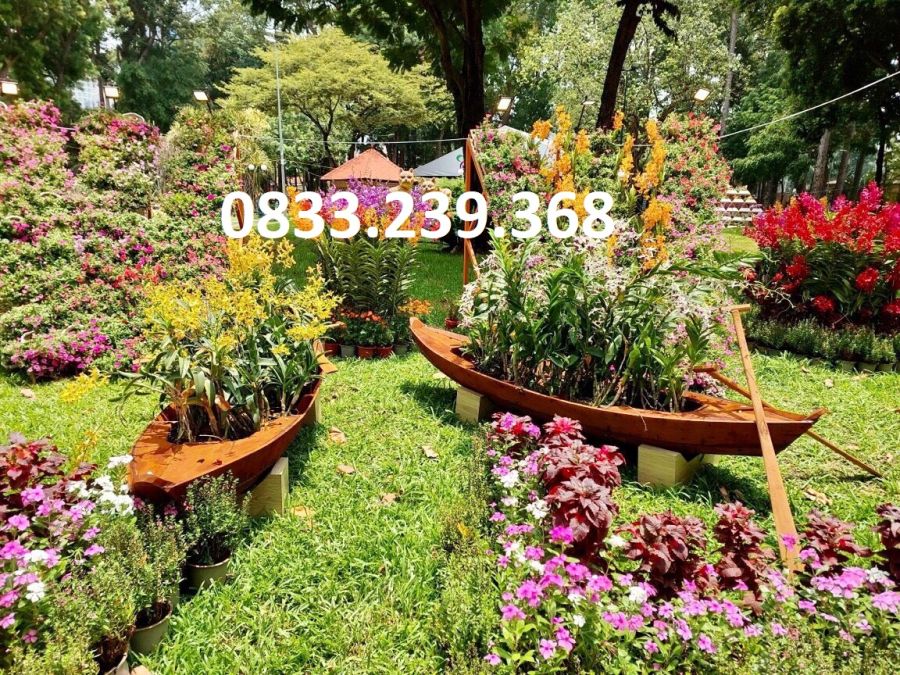 Thuyền gỗ, xuồng cây trang trí nội - ngoại thất, bày hoa thả hồ, trồng hoa - cây cảnh.