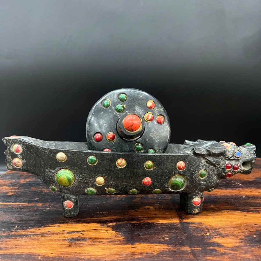 Thuyền tán bằng đá đen thiên thạch cẩn đá quý các loại ( ĐX- 089)