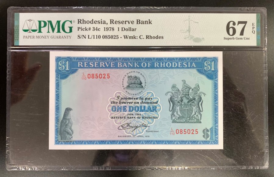 🌻🌻 Rhodesia 1 dollar 1978 P34c - PMG 67 EPQ