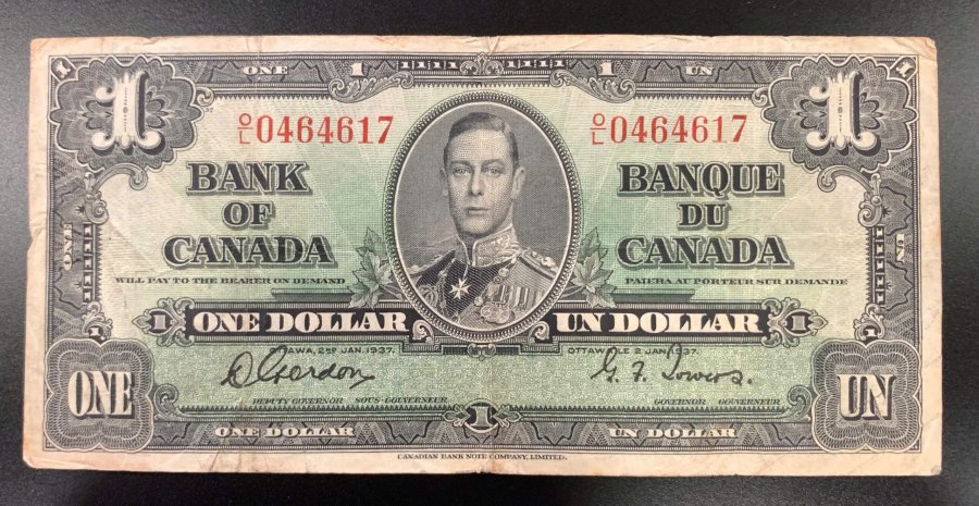 🌻🌻 Canada 1 dollar 1937 VF P58d