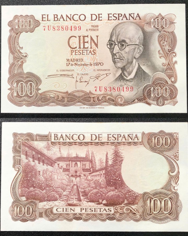 🌻🌻 Spain 100 Pesetas 1970 AUNC P152