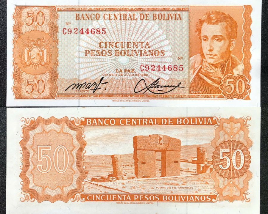 🌻🌻 Bolivia 50 boliviano 1962 UNC
