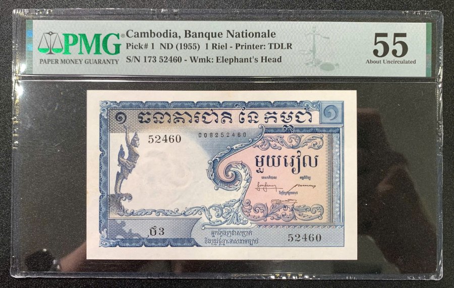 🌻🌻Cambodia 1 riel 1955 P-1 PMG 55