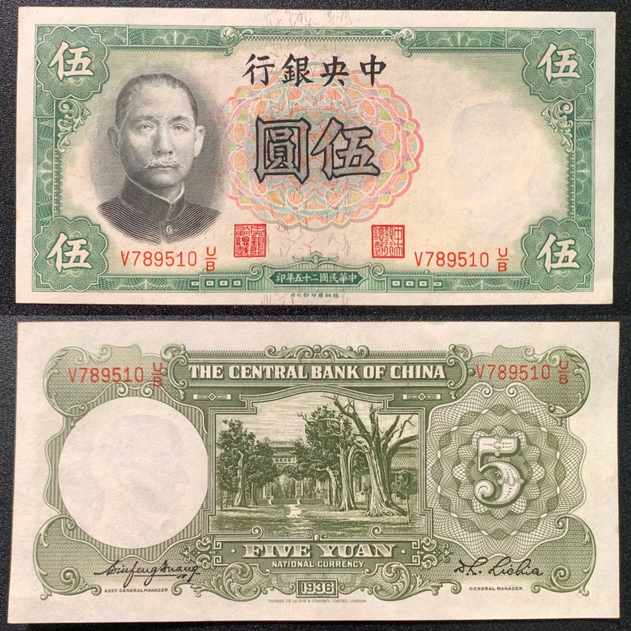 🌻🌻 China 5 Yuan 1936 AUNC UNC P214