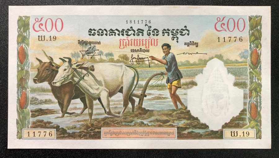 🌻🌻 Cambodia 500 Riels 1968 AU P14b3