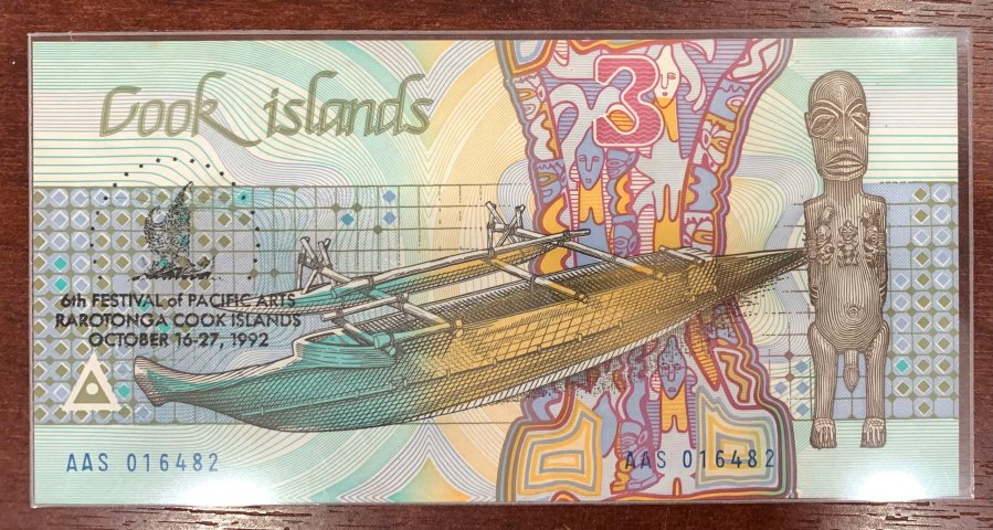 🌻🌻 Cook Islands 3 Dollars 1992 UNC P7