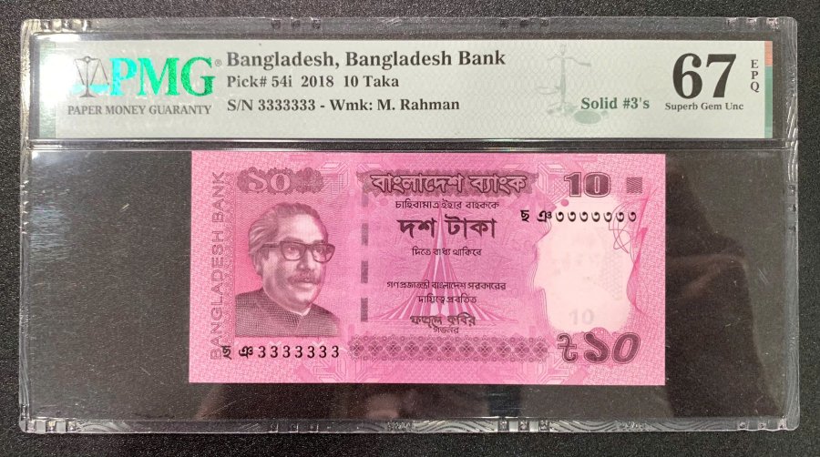 🌻🌻 Bangladesh 10 Taka 2018 P-54i - PMG 67 EPQ - Seri full 3