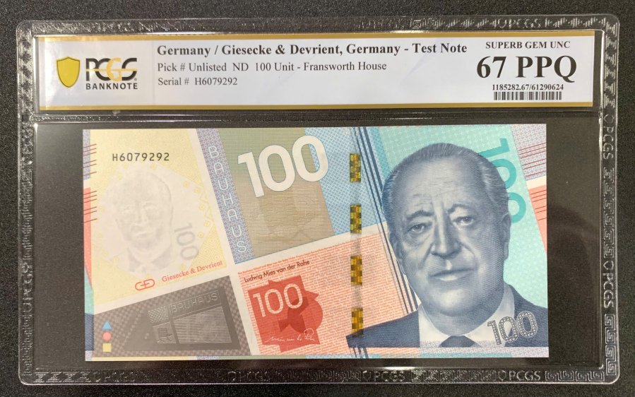 🌸🌸 Germany 100 Unite Giesecke & Devrient Test Note - PCGS 67 PPQ