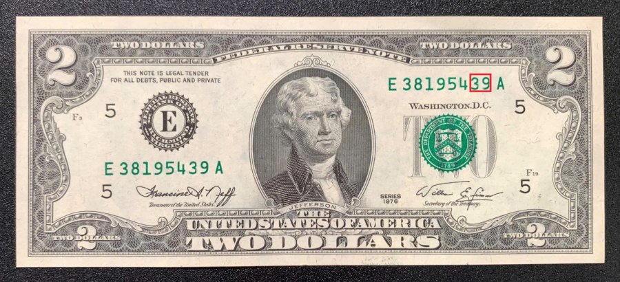 🍑🍑 USA 2 dollars 1976 UNC - Seri đuôi 39