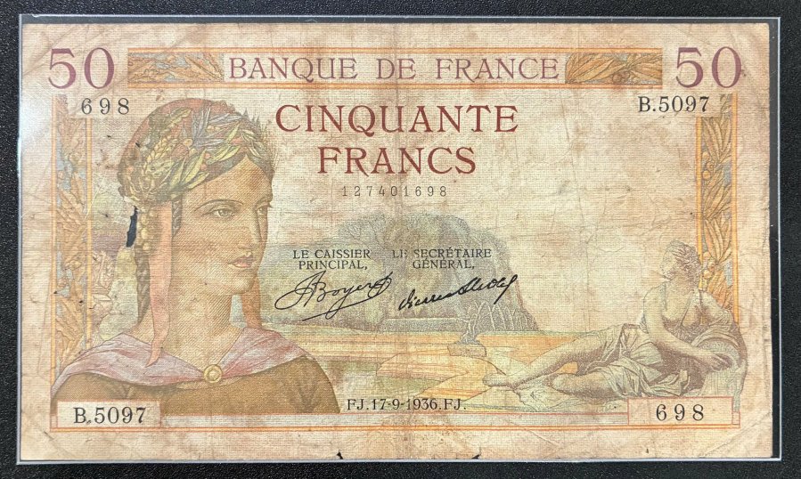 🍎🍎 France 50 Francs 1940 F VF P-85