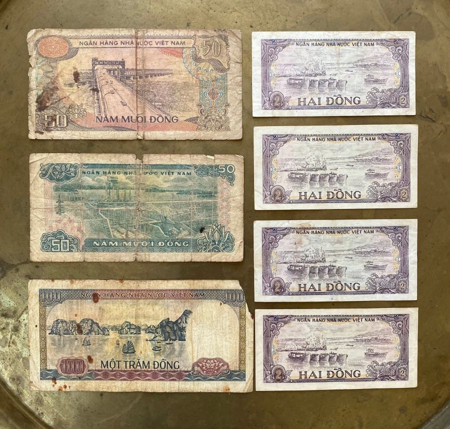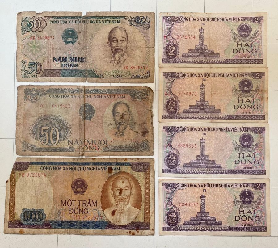 Em bán 7 tờ tiền Việt xưa, tình trạng như hình, giá: 140.000 đ + phí gửi. lh em 0989249111.