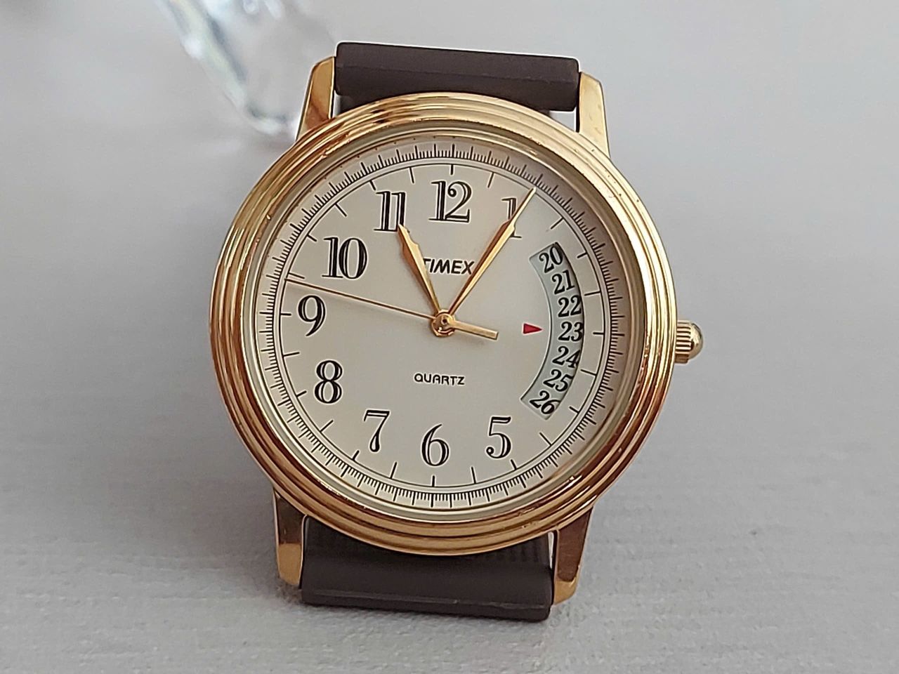 Timex máy pin nhật Vỏ mạ vàng rất đẹp Độ mới >97% Size 34 ko tính núm Mặt số học trò và bộ lịch rất đẹp độc Dây khoá thay mới Hàng xưa ko xài nước Giá 550k