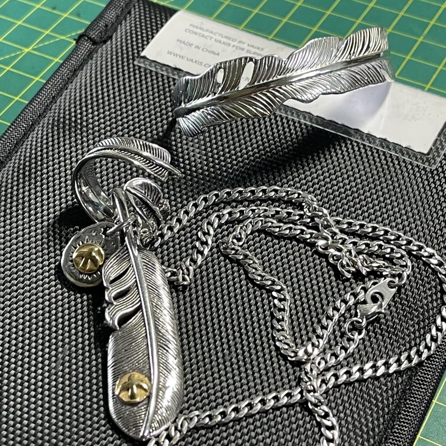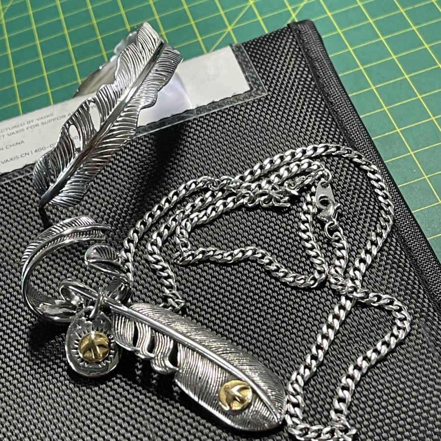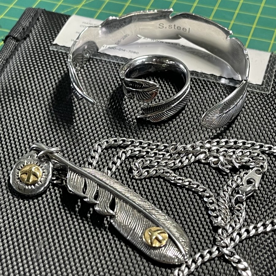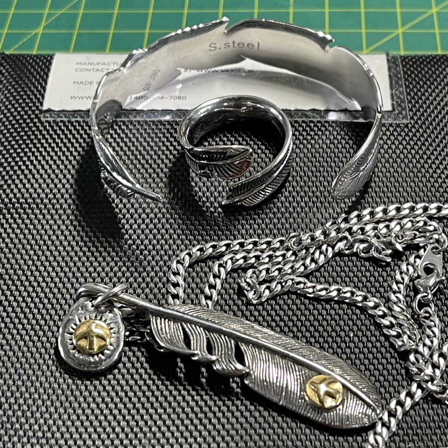 Nguyên comple Bộ dây chuyền & vòng & nhẫn hình lông vũ may mắn chính hãng Nhật bản zin 100% - chất liệu hợp kim sáng bóng chống dị ứng - tình trạng tuyệt vời - giá 1.001k ( KMC ). Kính mời