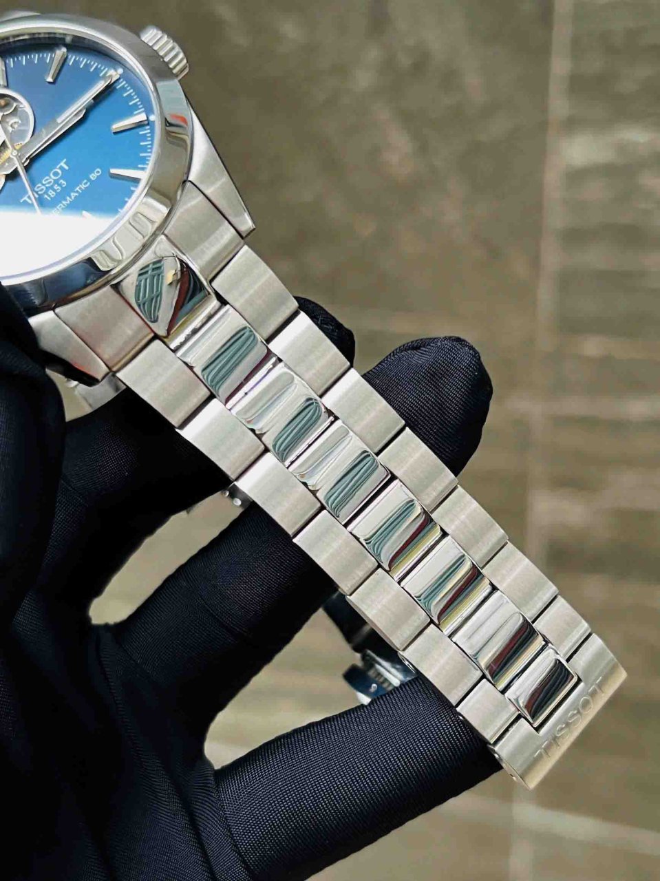 – Bộ truyền động Tissot Powermatic 80 Silicium với 25 chân kính, 21600vph & 80 tích cót, sử dụng Silicon Hairspring (Silicium) giúp bộ máy bền bỉ hơn & giảm khả năng nhiễm từ cao