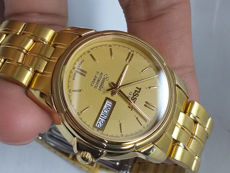 TISSOT AUTO - mới 98%. Dây zin chưa cắt mắc.Vỏ bọc Vàng. Kính saphia chống trầy.Size: 36 (ko núm).Dá: x triệuTell: 0908.756695