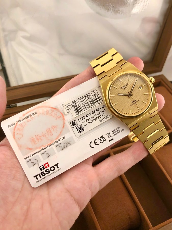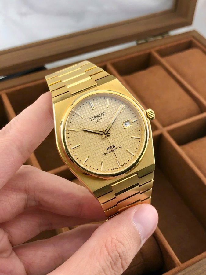 Tissot PRX Pw80 full gold-Size:40mm,kính Saphire-Máy Auto trữ cót 80hTình trạng:Qsd,zin all,full box date 2/2025