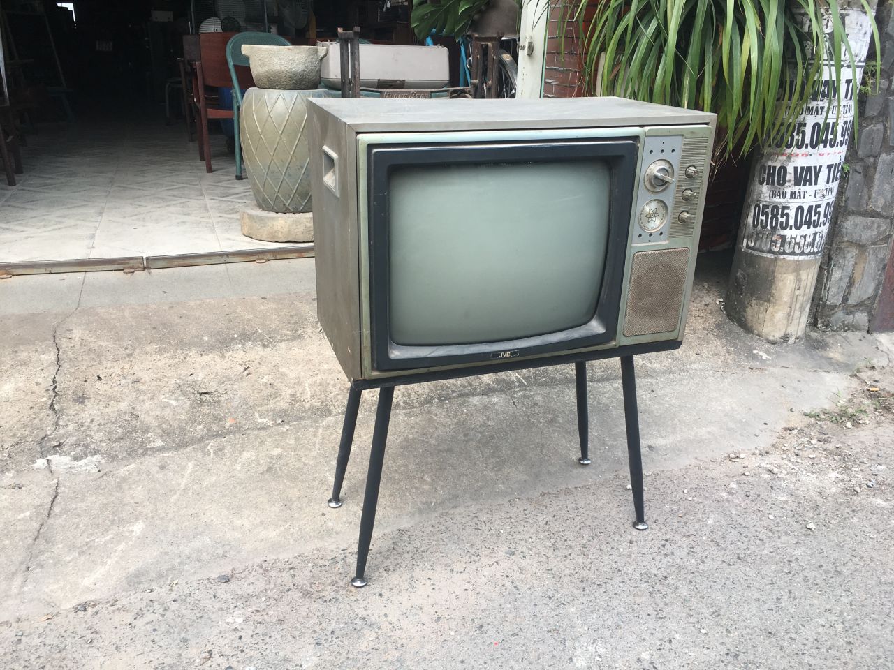 Bán tivi đen trắng Jvc vỏ gỗ , 16 inch. Gắn thêm 4 chân sắt côn (nguyên bản tivi Ko có 4 chân). Cắm điện còn sáng màn hình, hiện chưa xem được. Gia decor vintage giá 2,9 triệu đồng