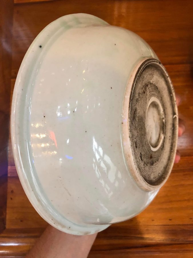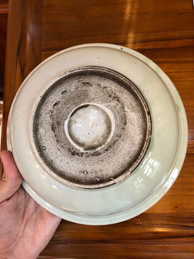 Tô đông thanh size lớn rộng 20.7 cm, cao 6 cm cốt rất dày và nặng, đồ chuẩn cổ lành tít