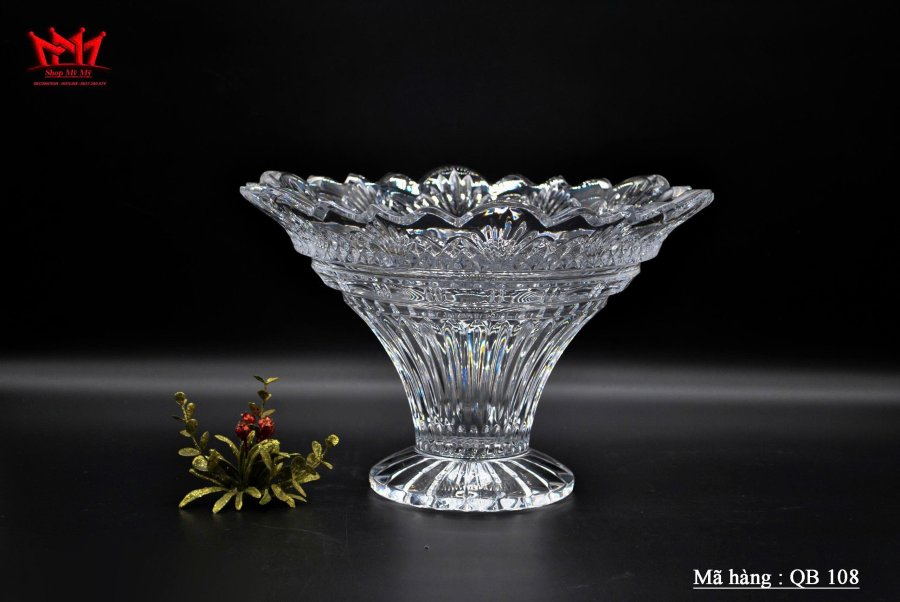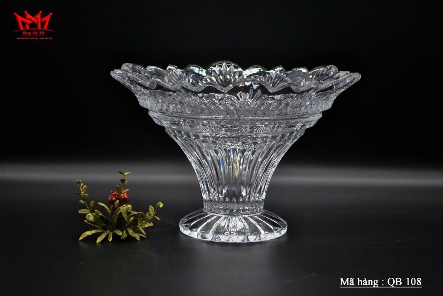 Thiết kế hoa văn cắt tinh xảo, kiểu dáng truyền thống, và được thiết kế để đặt ở trung tâm bàn ăn. Thường được dùng để đựng trái cây hoặc các món tráng miệng. Sản phẩm có độ trong suốt cao và khả năng khúc xạ ánh sáng tốt, tạo hiệu ứng lấp lánh.