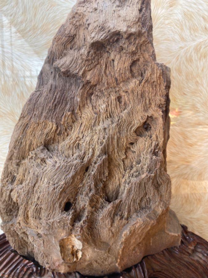 Wood fossil. Ngang 34 x sâu dày 16 x cao 65 cm. Trọng lượng 22 kg không bao gồm đôn gỗ cẩm